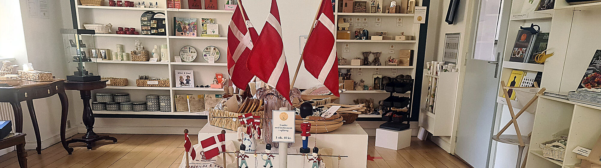I butikken har vi et stort udvalg af gammeldags legetøj, bøger, plakater, kort og postkort.
