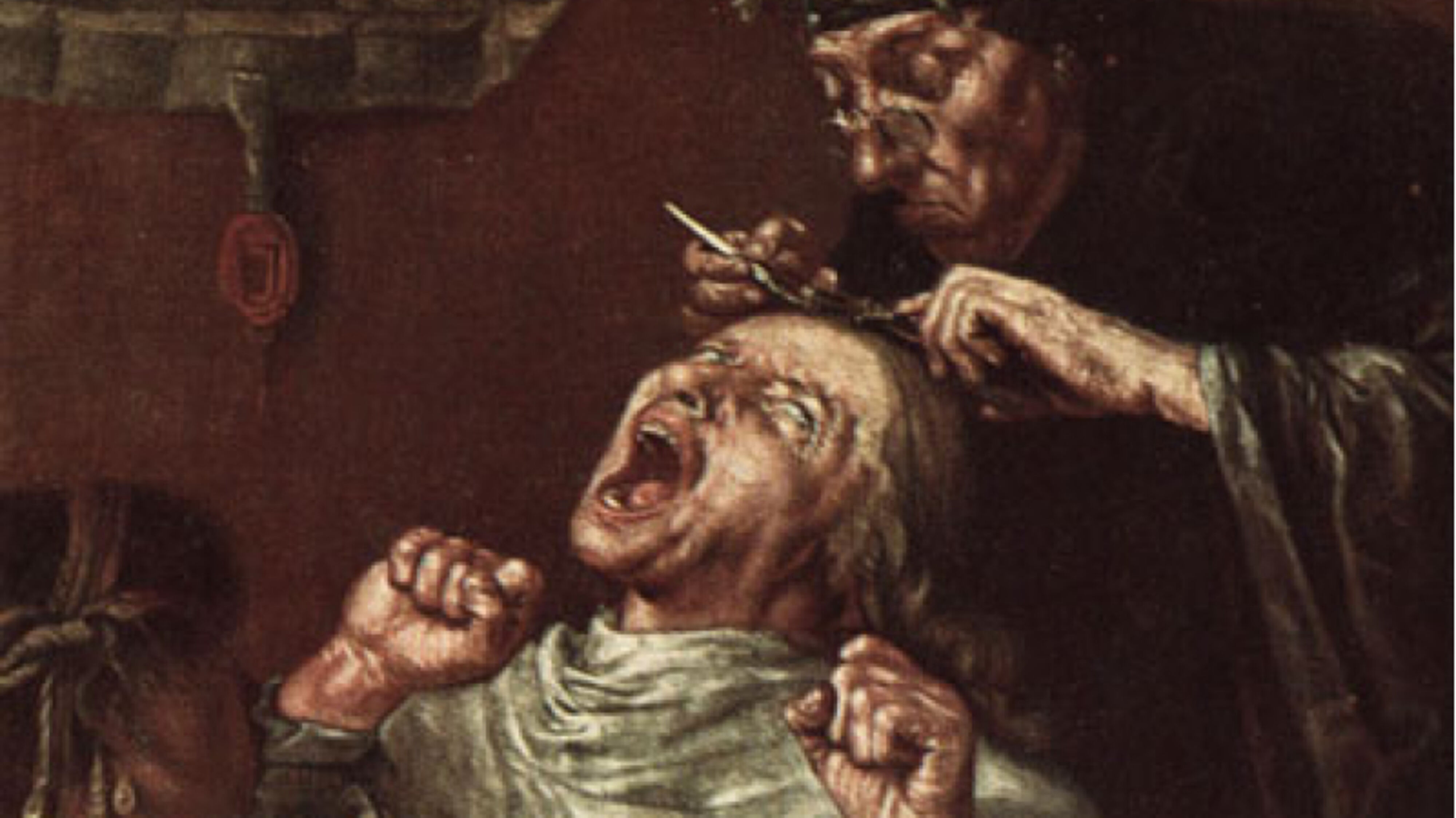 Man afskyder kanoner under ham og nærmer sig ham under skrækindjagende anstalter med glødende jern.