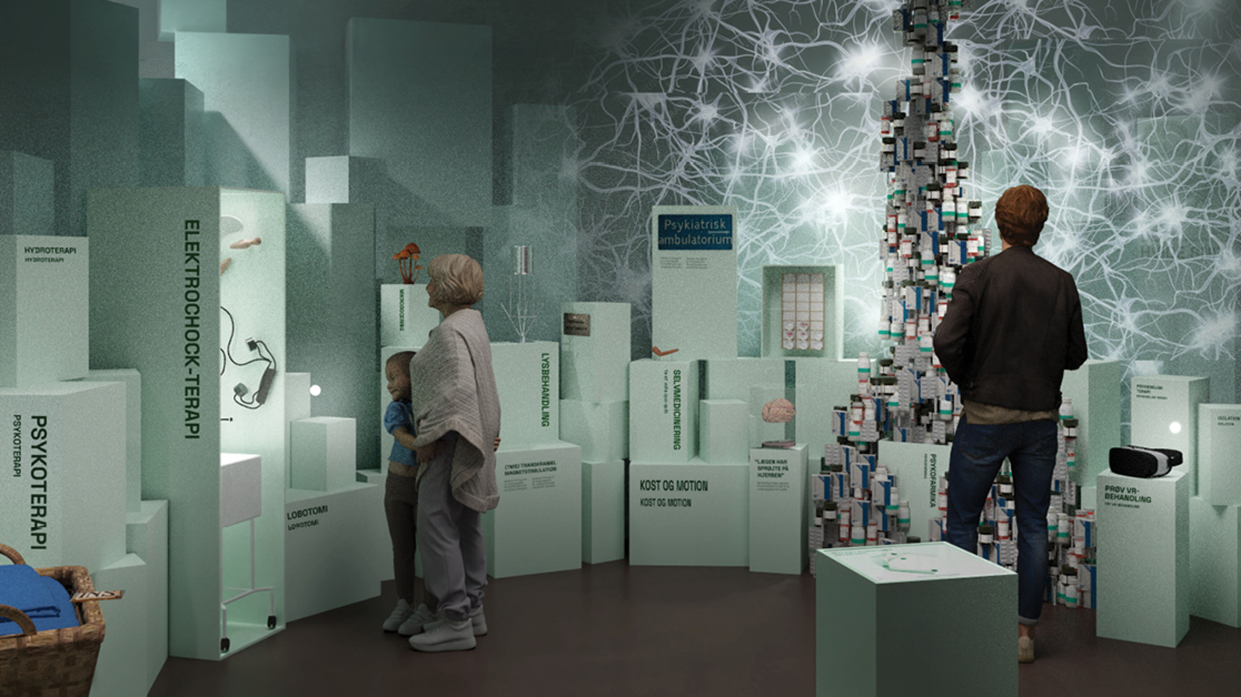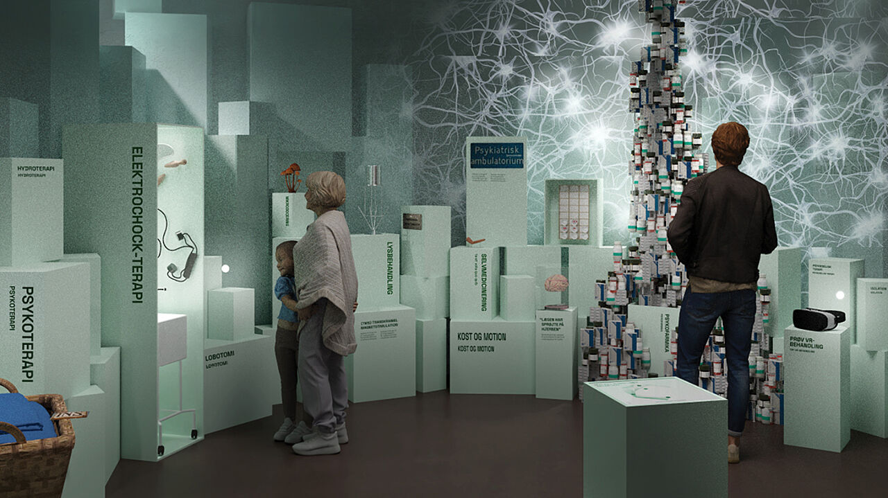 MINDs udstillinger formidler bl.a. psykiatrihistorie, sygdomsteorier, diagnoser og behandlingsformer.